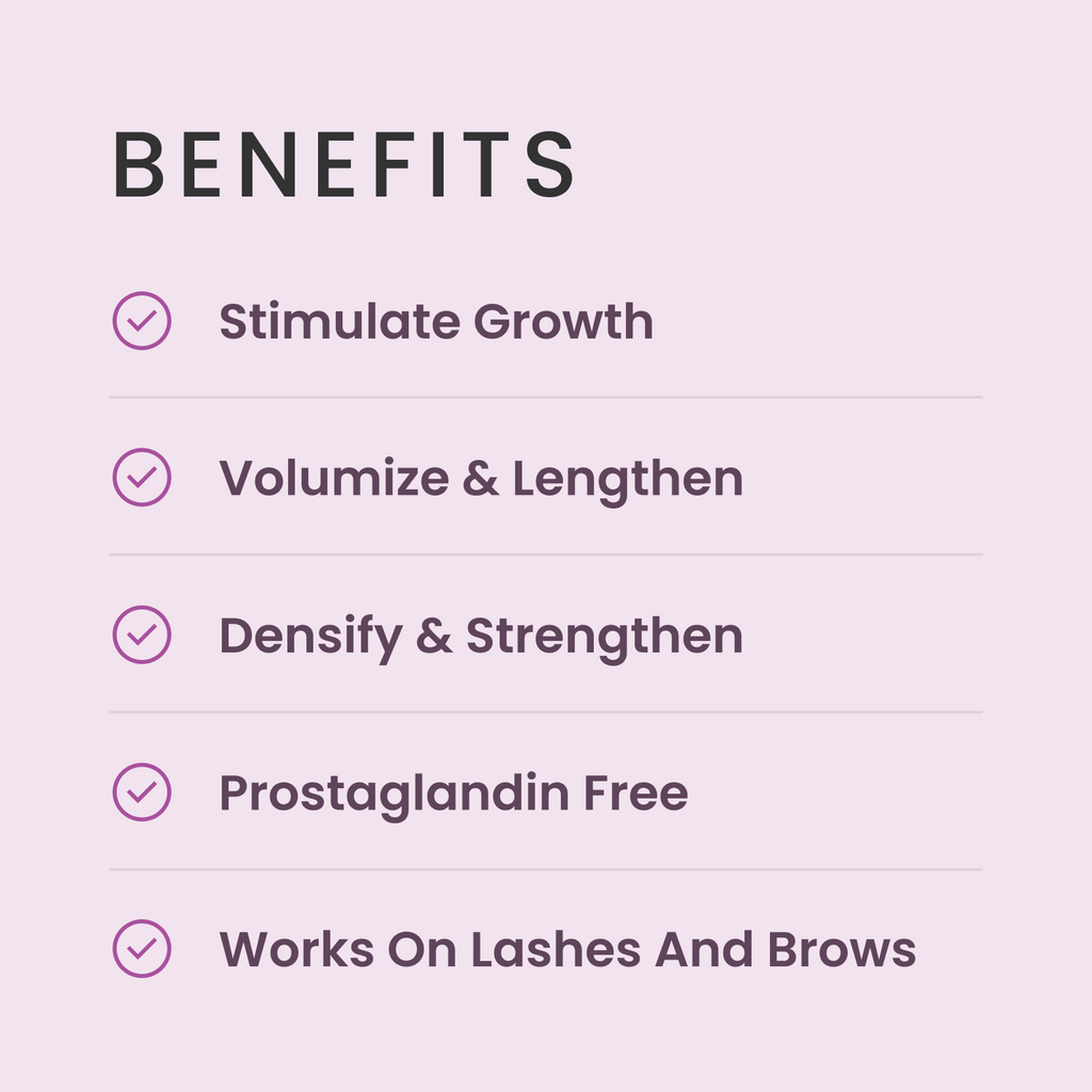 Water/Aqua/Eau, Malus Domestica Fruit Cell Culture Extract [Malus Stem Cells] , D-Panthenol, Indian Frankincense (Boswellia Serrata) Resin Extract, rh-Polypeptide-3 [Keratinocyte Growth Factor], Biotinoyl Tripeptide-1 [Widelash™ / Procapil® peptide], Acetyl Tetrapeptide-3 [Capixyl® peptide], Myristoyl Pentapeptide-17 [SymPeptide® XLash], Myristoyl Octapeptide-1 [Eyelash Fortifying Peptide], [Redensyl®:] Glycerin (and) Sodium Metabisulfite (and) Glycine (and) Larix Europaea Wood Extract (and) Zinc Chloride (and) Camellia Sinensis Leaf Extract, Vitis Vinifera (Grape) Seed Extract [Grape Seed Procyanidins], Radix Polygoni Multiflori Preparata Extract, Glycine Soja (Soybean) Extract [Soy Isoflavones], Saw Palmetto (Serenoa Repens) Fruit Extract, Sodium Hyaluronate, Phenoxyethanol, Nettle (Urtica Dioica) Root Extract, Palmitoyl Tripeptide-1 [Pal-GHK] , Tripeptide-3 (AHK) [ATPeptide], Mannitol, Copper Tripeptide-1, Prezatide Copper Acetate, Crithmum Maritimum (Sea Fennel) Extract.